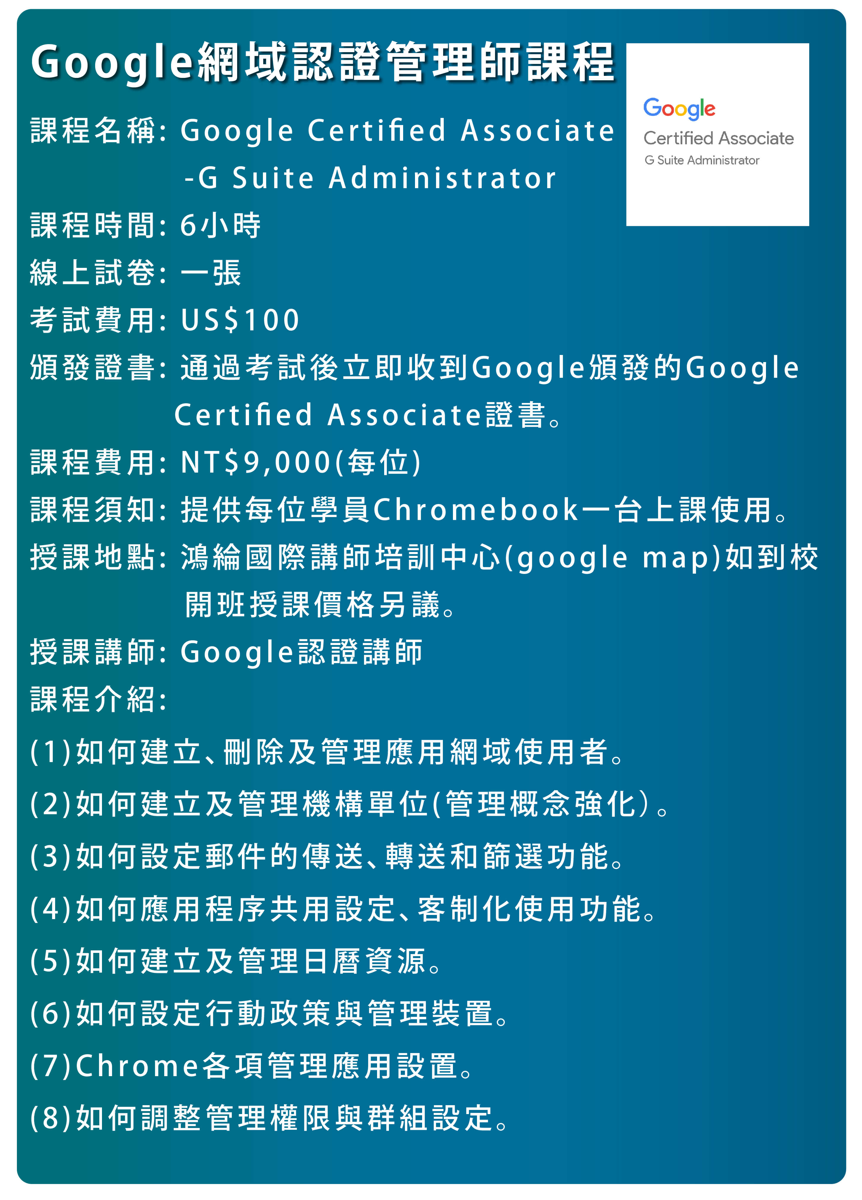 個人履歷: 至少10小時的Google App應用培訓時數及個人履歷